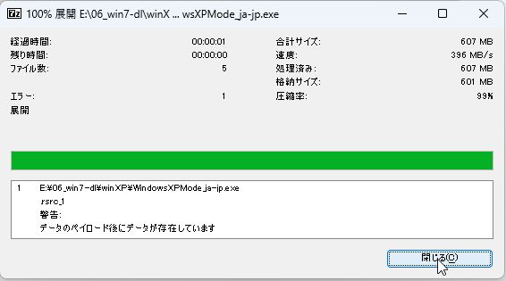 圧縮解凍ソフト「7-Zip」を使って解凍(展開を行う。)