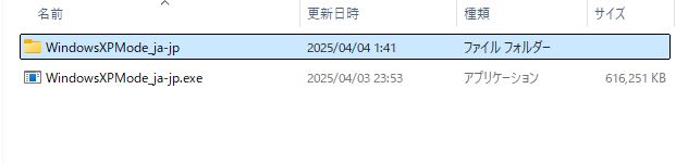 下図のように、「WindowsXPMode_ja-jp」フォルダが生成される。