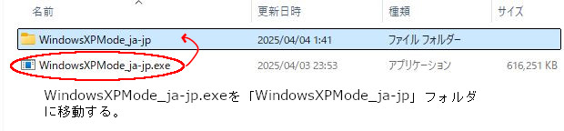 WindowsXPMode_ja-jp.exeを生成された「WindowsXPMode_ja-jp」フォルダに移動する。