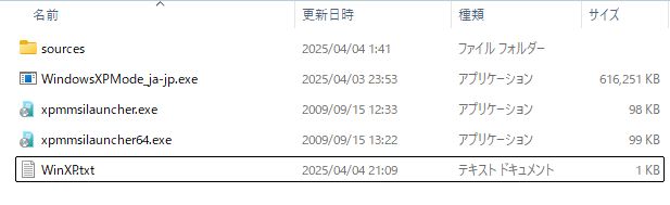 移動すると、「WindowsXPMode_ja-jp」フォルダの中身は下図のようになる。