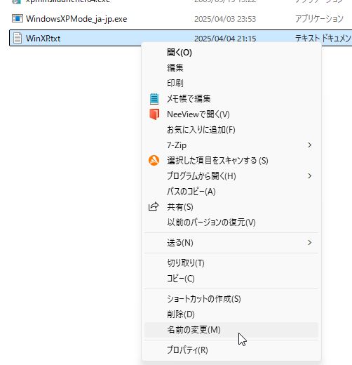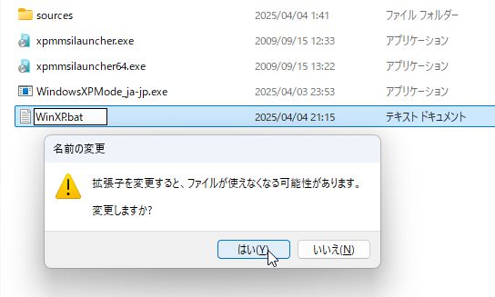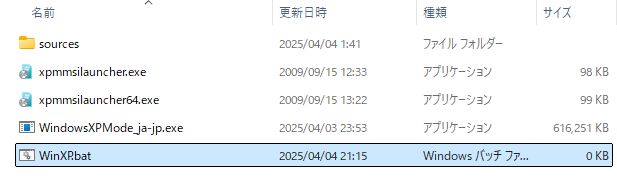 WinXP.txtファイルを名前の変更でWinXP.batに変更する。